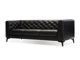 Looking for a minimal tight seat and back sofa that absorbs the attention of the room? You've found the Dalton. Inspired by classic spy cinema, the Dalton balances class and character. The vintage black leather is the real deal: 100% top grain hide.