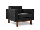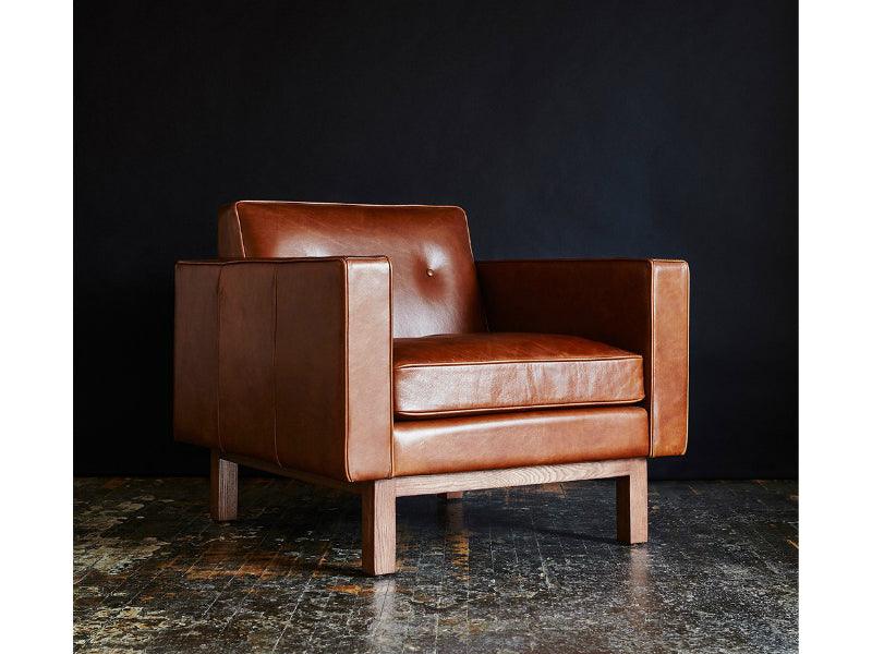 The Embassy Chair conveys a classic, mid-century style with tailored proportions and refined details. It features a button-tufted, tight back design with piping details throughout, and seat cushions filled with a luxurious feather blend. The frame is supported by a recessed, solid-wood base. Available in three vintage leathers, chosen for their unique grain characteristics that will age beautifully and develop a rich, natural patina over time. Also available as a sofa. Our leather hides are carefully selected for their raw, natural surface characteristics which make each piece unique.