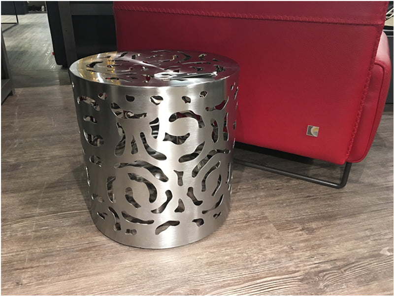 Random yet harmonious, the Kihei's unique design yet functional shape can be used for seating or as a stand. 100% stainless steel.