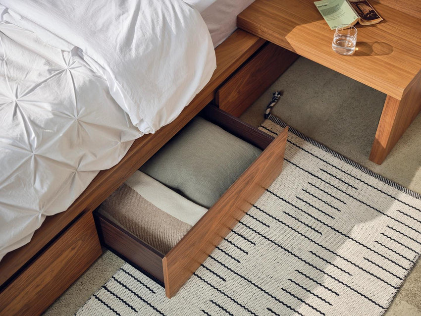 This bed features a simple platform design and board-on-frame construction. Maximize your space and add additional storage drawers to one or both sides of the bed frame, or, for bedrooms with space to spare, panel extensions are also available.