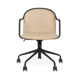 At your home office or corporate HQ, the Draft Task Chair is a minimalist marvel with style and functionality at its core. Covered in a soft-touch suede-like fabric, the molded seat and back piece creates a seamless look that maximizes comfort for all-day use. Black metal tubing traces a continuous line from arms to back and coordinates with the durably engineered, yet lightweight steel base. And if that’s not enough, this do-it-all chair offers height adjustability, a tiltable back, and a smooth 360-degree swivel rotation to glide you through the busiest of work weeks with ease.