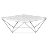The Jasmine Coffee Table boasts an ingenious design and elegant stability. Its fragile structure, composed of squares and triangles, supports a sturdy marble tabletop, evoking a feeling of delicacy and sophistication. Meticulously handcrafted from individual pieces of natural stone, each table offers distinctive patterns and exquisite touches.