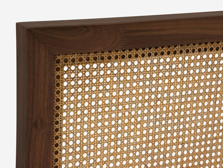 The Marcel Cane headboard is framed in wood and features a hand-woven weaving design, making no two pieces exactly alike. Its environmentally sensitive water-based finish highlights the inherent beauty of the headboard while protecting against everyday wear and tear.