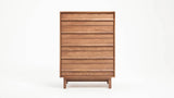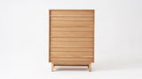 The Marcel Chest is a modern chest of drawers that features a trestle base, solid oak or walnut handles, and under-mounted full-extension drawer slides. This chest is designed by Winnipeg-based Matthew Kroeker, and highlights the warmth and natural detailing of solid wood with a mid-century modern appeal.