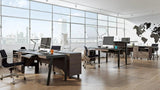 Whether creating a large corporate office or a more compact space at home, the Sigma office collection delivers a variety of desk and storage options. Satin-etched glass work surfaces provide elegance while durable engineered finishes ensure this system can handle the toughest workday.