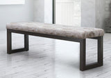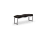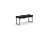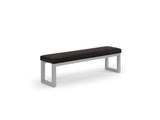 This bench features a modern design with a cushioned seat available in a wide range of fabrics. It is supported by a simple and sleek steel frame.